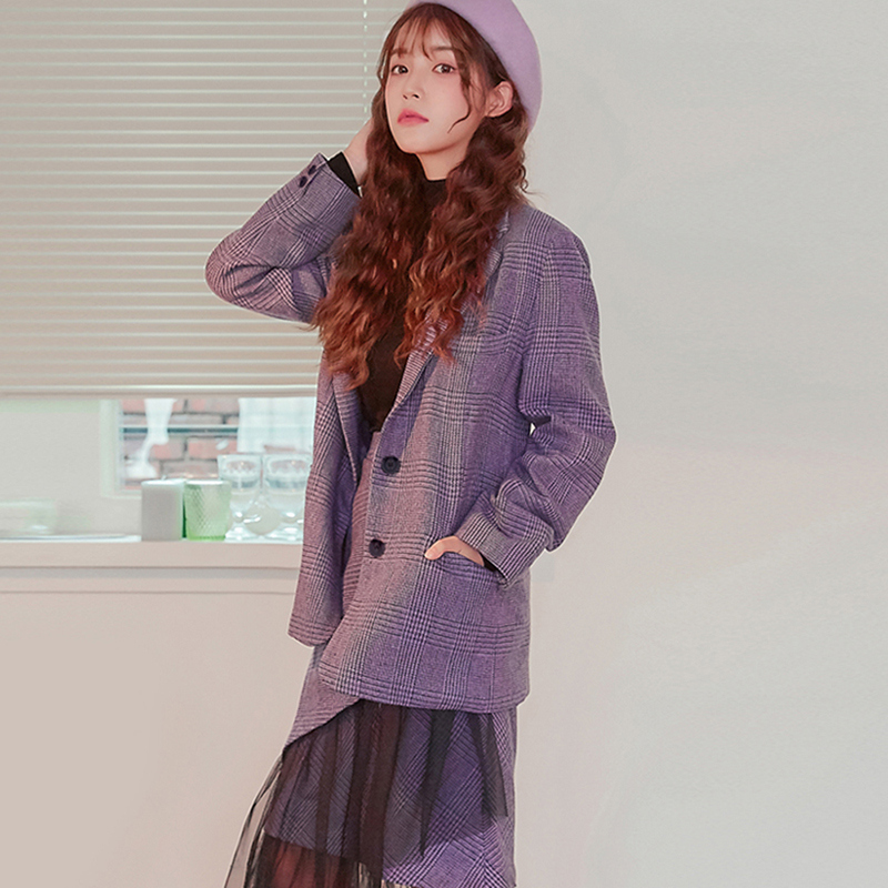 好价:ZERO STREET WOOL CHECK JACKET_PURPLE_F 外套