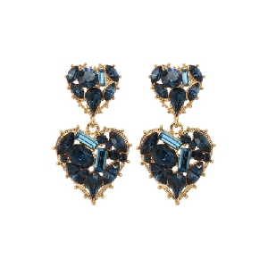 REF.NO:네이비 스톤 더블 하트 드롭 귀걸이